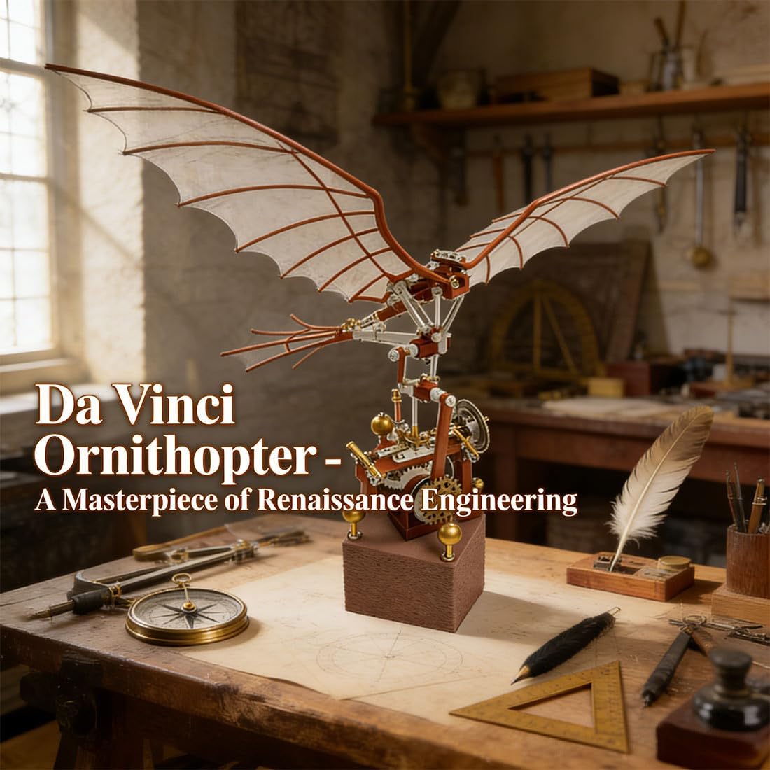 3D Metal Puzzle Da Vinci Flapping Wing for Adults to Build, 3-4 Hours Assembly Steampunk Metal Mechanical Animal Jigsaw Puzzle Model Kit, Birthday Xmas Gifts (243 PCS)