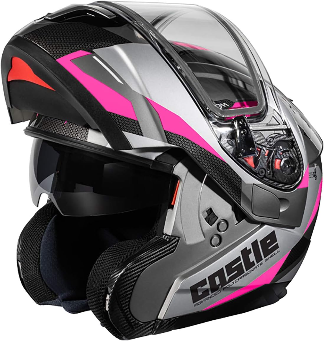 Electric configuration features an Electric dual pane anti-fog shield, Smoke tint sun visor, breath box, and cold weather chin curtain.