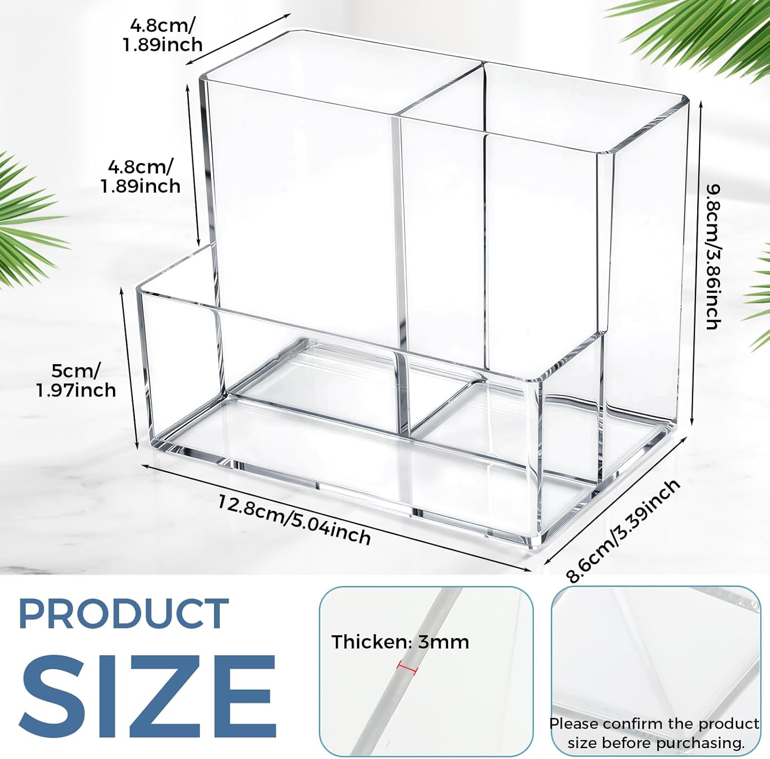 Features: The pen holder storage box can meet your storage needs on different occasions, suitable for storing your desk stationery, such as pens, pencils, markers, rulers, scissors, and many other desktop gadgets, and there is enough space for your makeup brushes, keeping your desk organized and stylish. The clear pencil holder is designed with a transparent luster and a crystal like appearance with smooth, shiny edges. Specifications: Material: acrylic Color: clear Size: about 5 x 3.4 x 8.9 inches/ 12.8 x 8.6 x 9.8 cm Package includes: 12 x Clear acrylic pen holders Notes: Please allow slight size error due to manual measurement. The colors may exist slight difference due to different screen