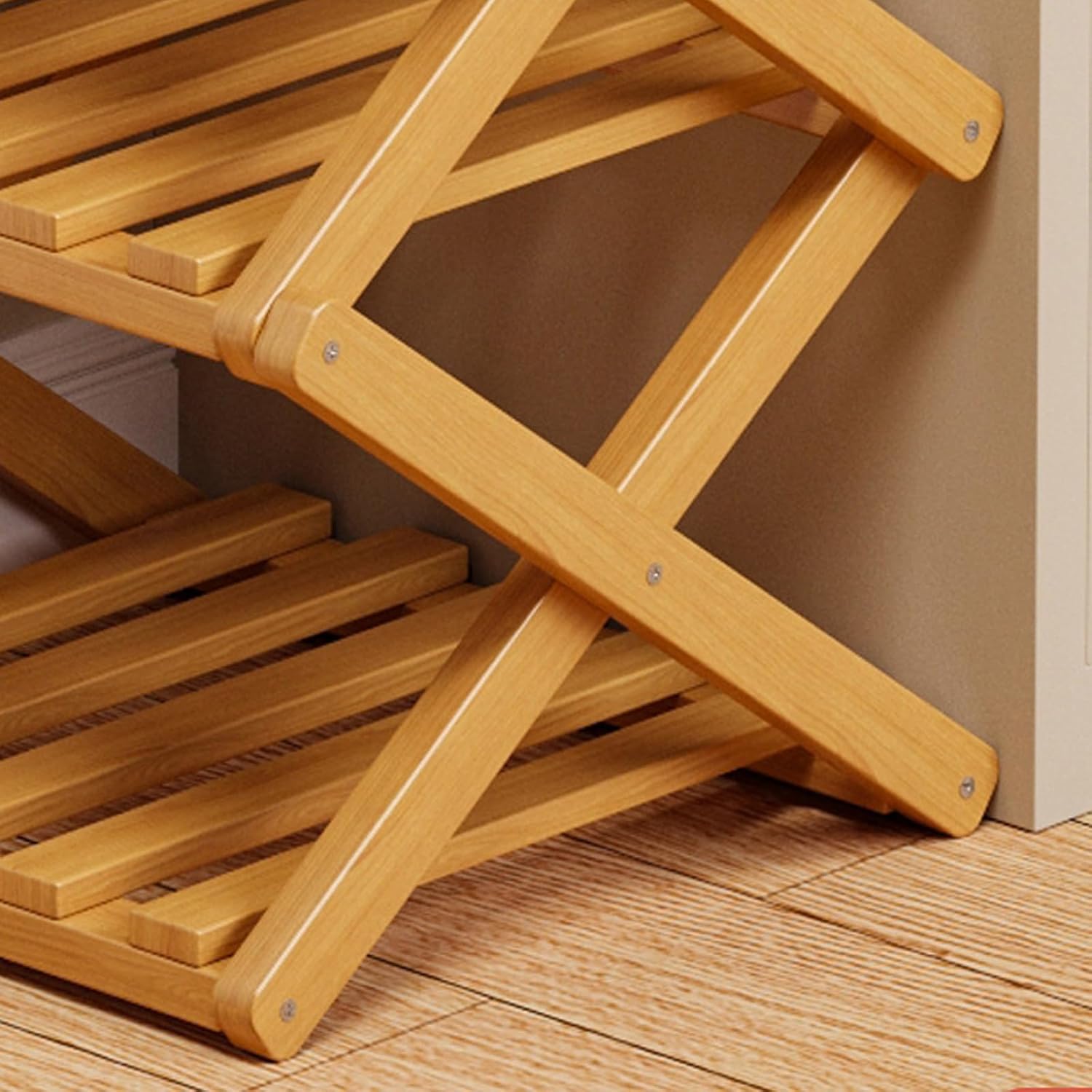 Frequently Asked QuestionsQ: Is the bamboo shoe rack really sturdy?A: Very sturdy! The X-shaped frame structure evenly distributes the weight, and bamboo itself has natural rigidity. Tested in everyday household use.Q: How many pairs of shoes can it hold?A: It has 9 racks, each easily accommodating 1-2 pairs of regular-sized shoes. It can hold a total of 9-14 pairs or more, depending on the size and style of the shoes.Q: Is it waterproof?A: While bamboo itself has some moisture resistance, this shoe rack is designed for indoor use. A water-based sealant helps prevent damage from everyday household moisture, but we do not recommend prolonged exposure to rain.Q: How do I fold the upright shoe rack for storage?A: Simply unlock the locking mechanism to fold it for storage. The user-friendly design makes installation and disassembly equally simple.Product SpecificationsMaterial: High-quality natural bambooNumber of Shelves: 2/3/4/5/6/7/8/9 fixed shelvesLoad Capacity: 15 kg per shelfAssembly Required: No assembly required - Instant unfoldingColor: Natural bamboo colorCare Instructions: Wipe clean with a damp clothPackage Contents:1 x No-Assembly Bamboo Shoe Rack - Foldable Shoe Rack